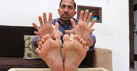 ودخل الرجل البالغ من العمر 46 عاما، في موسوعة غينيس للأرقام القياسية لامتلاكه 28 إصبعا موزعة بالتساوي بين يديه وقدميه.