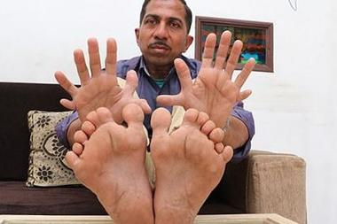 انتشرت على مواقع التواصل الاجتماعى، صوراً لرجل سجل رقما قياسيا لامتلاكه أكبر عدد من أصابع اليدين والقدمين في العالم.
