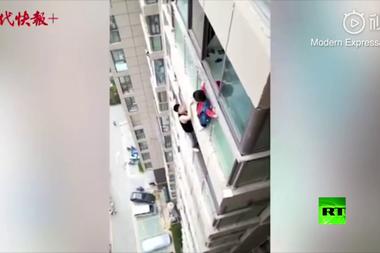 وقع في مدينة سوتشيان بمقاطعة جيانغسو الصينية، حادثاً خطيراً للغاية، كاد أن يتسبب في وفاة طفل صيني قد تعلق على حافة شرفة في الطابق 14 لمبنى سكني.