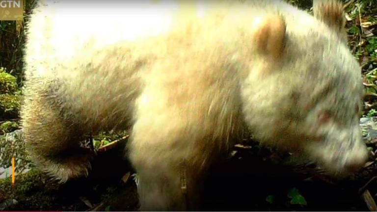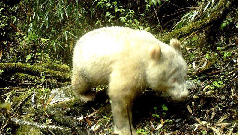 رصدت كاميرا مخصصة لالتقاط صور من الحياة البرية في إحدى المحميات الطبيعية، أول صورة لدب الباندا الأبيض بالكامل.