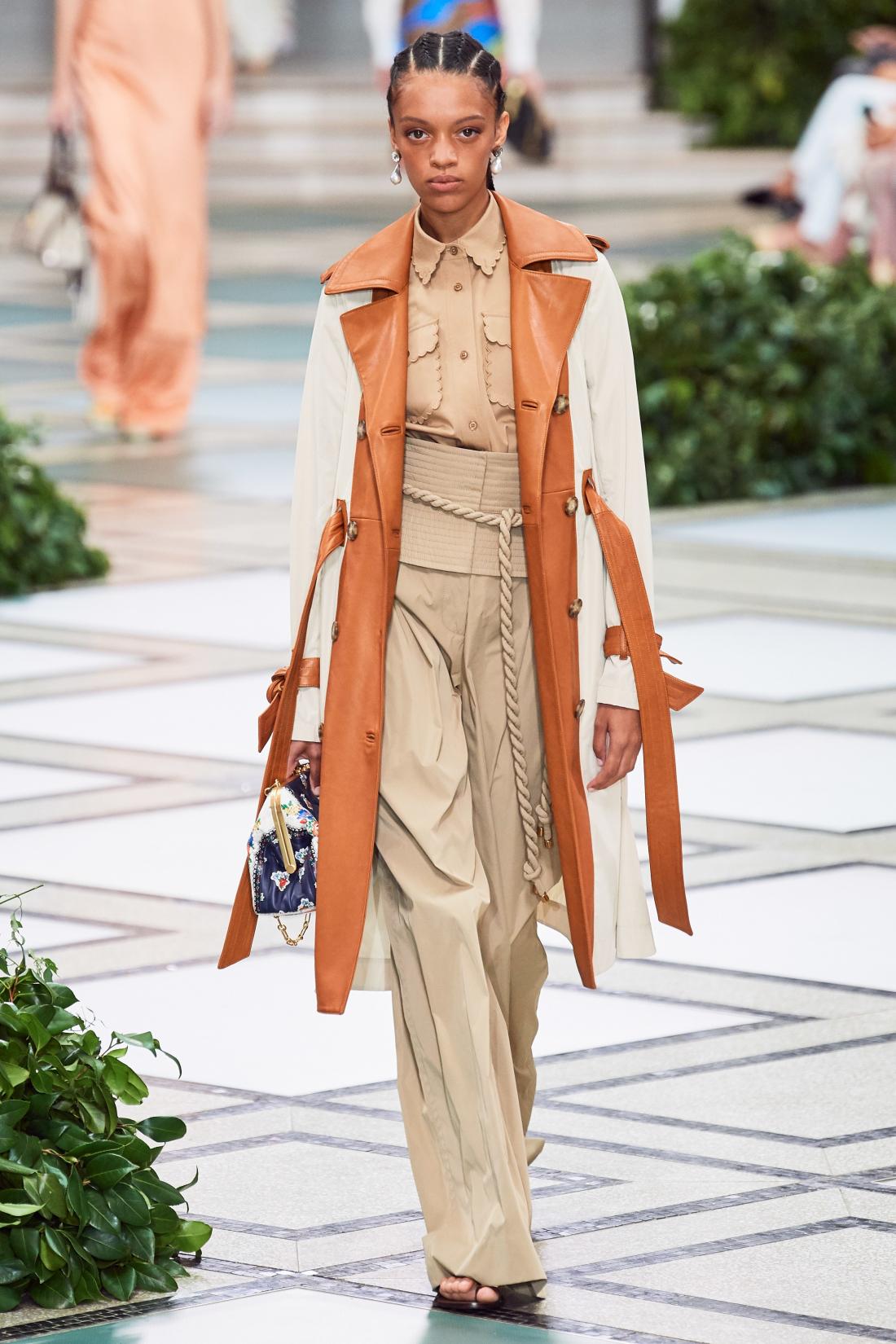وبشكل عام تميزت التصميمات بالكلاسيكية والألوان الهادئة، إضافة إلى الأقمشة المطبعة بالورود الملونة وحقائب الجلد.