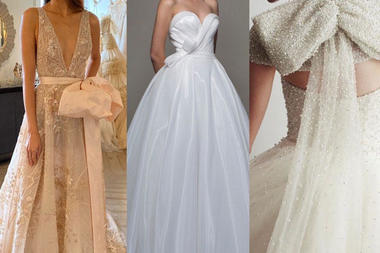 تضيف الفيونكات لمسة رومانسية حالمة للعروس، سواء الفيونكات الصغيرة أو الكبيرة، والتي تظهر على الخصر أو الظهر.