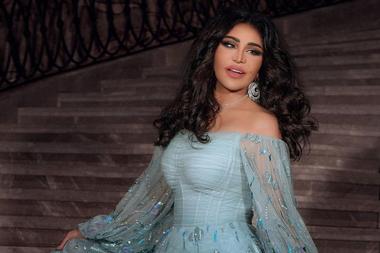 ارتدت دنيا طرحه الفستان بشكل مختلف علي الرأس واعتمدت على وضع المكياج باللمسات البسيطة التي كشفت عن جمالها